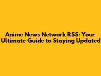 Anime News Network RSS: Stay Updated