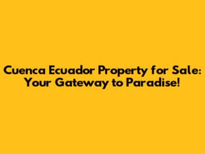 Cuenca Ecuador Real Estate: Your Dream Home Awaits!