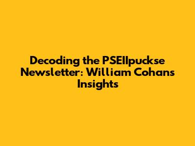 Hey everyone! Ever stumbled upon the PSEIIpuckse newsletter and wondered what it's all about? Well, you're in the right place! We're diving deep into this newsletter, especially focusing on the insights provided by William Cohan. Get ready to decode it all, from the finance lingo to the juicy market observations. Let’s unravel what makes this newsletter tick and why it’s worth your time. This is a deep dive into the world of PSEIIpuckse and the wisdom it offers, with a special emphasis on the contributions of William Cohan. Buckle up, guys; it's going to be an exciting ride! We’ll be exploring the key elements of the newsletter, the core focus areas, and the valuable perspectives that make it a must-read for anyone interested in finance, economics, and business. This journey will guide you through the complexities and present the information in a way that is easy to understand, even if you’re new to the financial world. Our goal is to make the PSEIIpuckse newsletter accessible to everyone and show you how to leverage it to gain valuable insights. So, let’s get started and decode the secrets this newsletter holds!