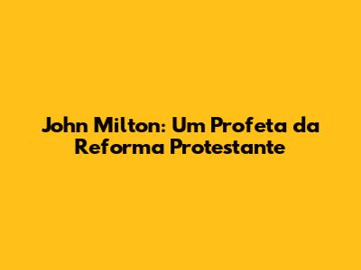 John Milton: Um Profeta Da Reforma Protestante