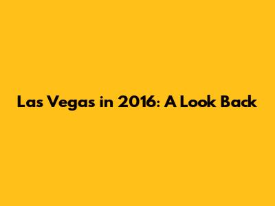 What Made Las Vegas in 2016 a Standout Year?