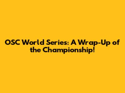 OSC World Series: A Wrap-Up Of The Championship!