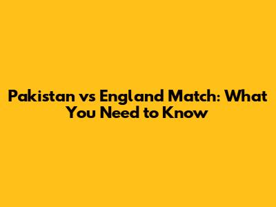 Pakistan Vs England Match: What You Need To Know