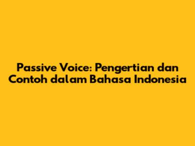 Passive Voice: Pengertian Dan Contoh Dalam Bahasa Indonesia