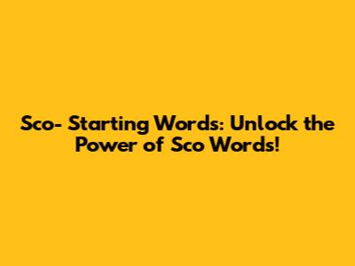 Sco- Starting Words: Unlock The Power Of 'Sco' Words!