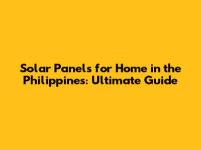 Solar Panels For Home In The Philippines: Ultimate Guide