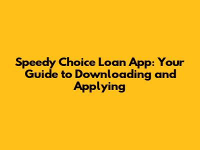 Speedy Choice Loan App: Download & Application Guide