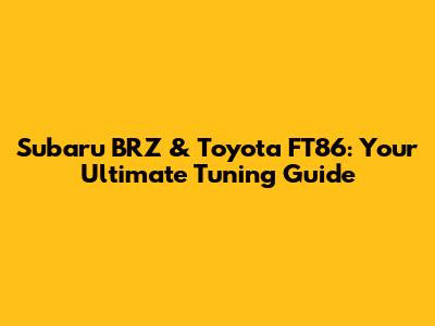 Subaru BRZ & Toyota FT86: Your Ultimate Tuning Guide