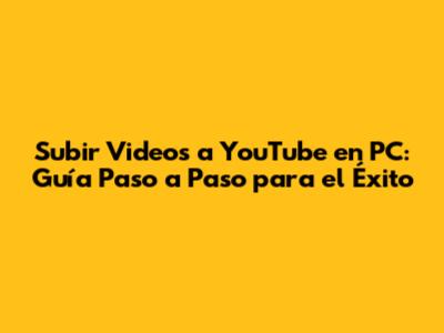 Subir Videos A YouTube En PC: Guía Paso A Paso Para El Éxito
