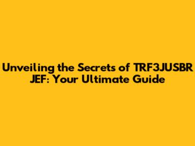 Maximizing Performance: Tips and Tricks for TRF3JUSBR JEF